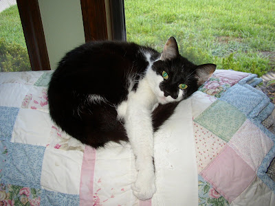 Well my day is ending nicely with a visit to you! Sounds like your day was perfect! Glad your son's girlfriend made it to church! That little dog looks really cute! And so does your cat. And yes, she looks a little annoyed that you woke her up with the flash!