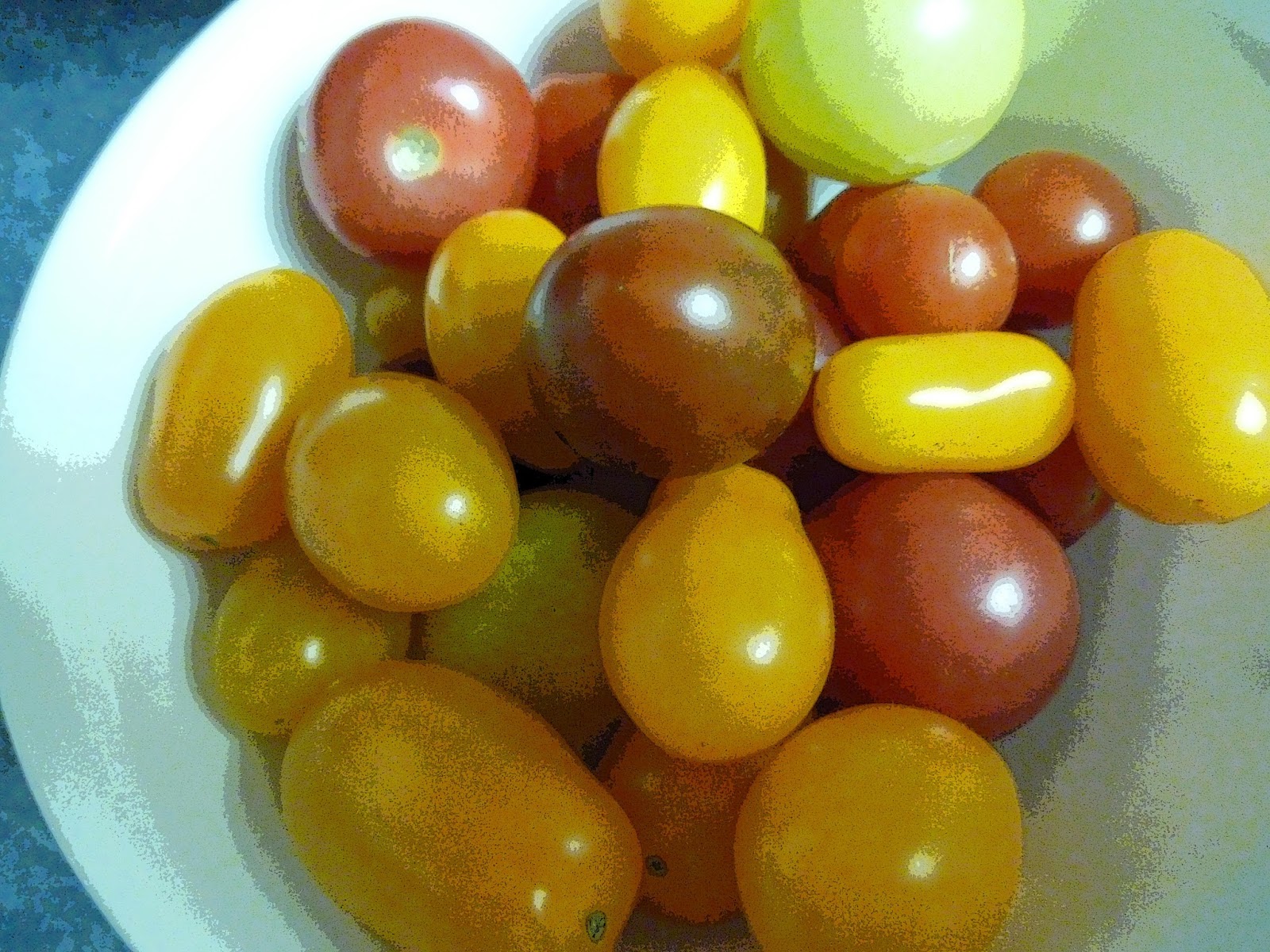 I picked up a container of cherry tomatoes at Trader Joe's yesterday and I immediately thought how much the variety of colors looked like fall.